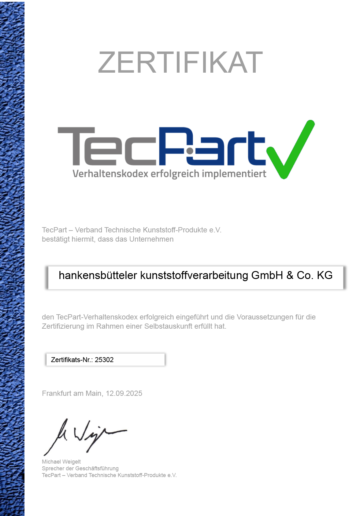 Zertifikate & Qualitätsnachweise der hankensbütteler kunststoffverarbeitung